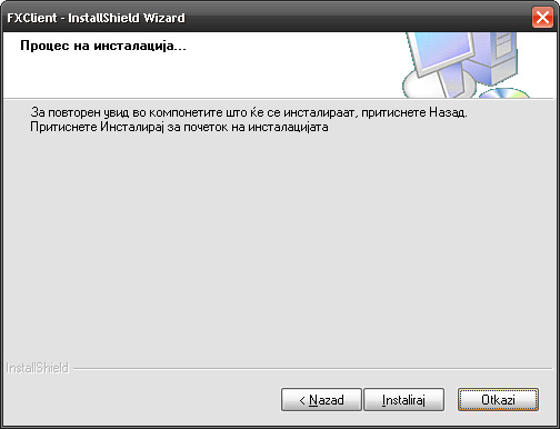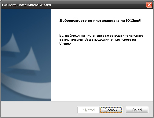 Во наредниот прозорец, кликнувате на копчето Инсталирај за да започне исталацијата на FXClient.