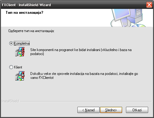 Инсталацијата на апликацијата FX Client и софтверот за работа со смарт картички се инсталираат преку истиот инсталационен пакет. До него се доаѓа, едноставно, со притискање на копчето Инсталација на FXClient.
