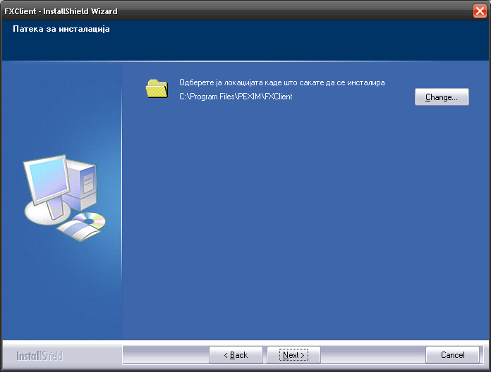 Во следниот чекор, доколку имате одбрано Клиент инсталација, се задава дестинацијата (фолдерот) каде што ќе се инсталира програмот.