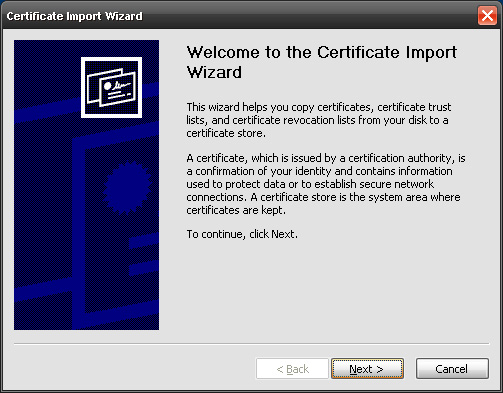 Сертификатите играат улога при размената на податоци меѓу вашата апликација и банката, поточно се неопходни во процесот на криптирање и заштита во преносот на податоците. Ќе се појават следниве прозорци за импорт (внес на сертификати) :