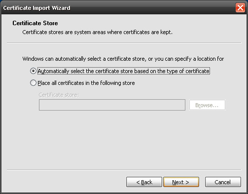 Кликнете на OK и ќе се појави прозорец за внес на сертификати. Постапката е крајно едноставна.